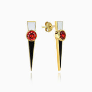 24K Gold plated Sterling Silver, Swiss cut Amber colored Zirconia stones, enamel. Pure 14K Gold earring pins/posts.